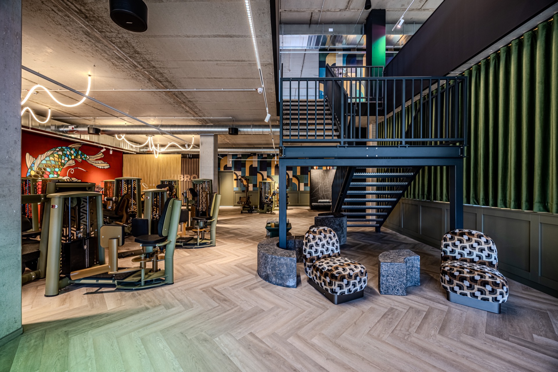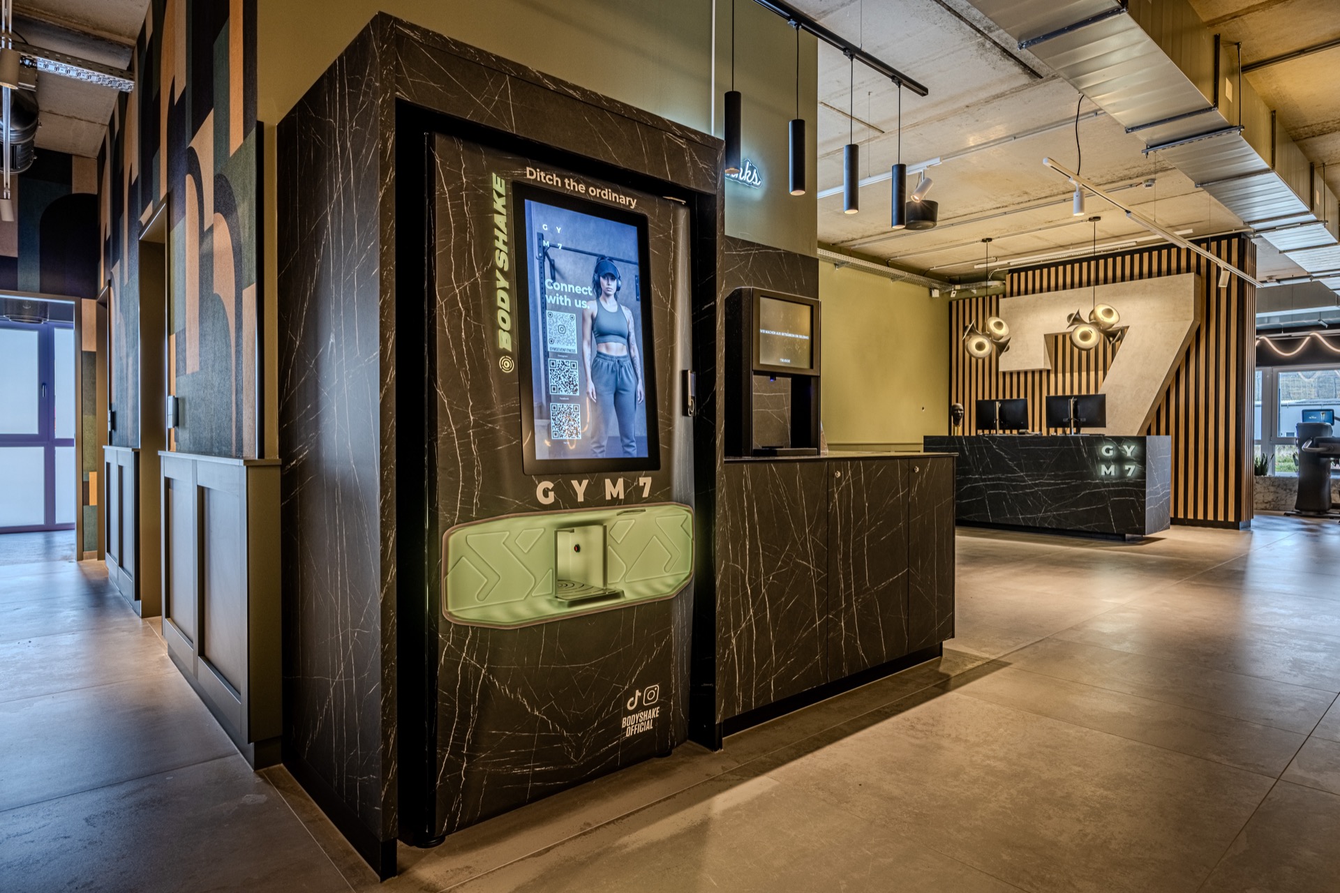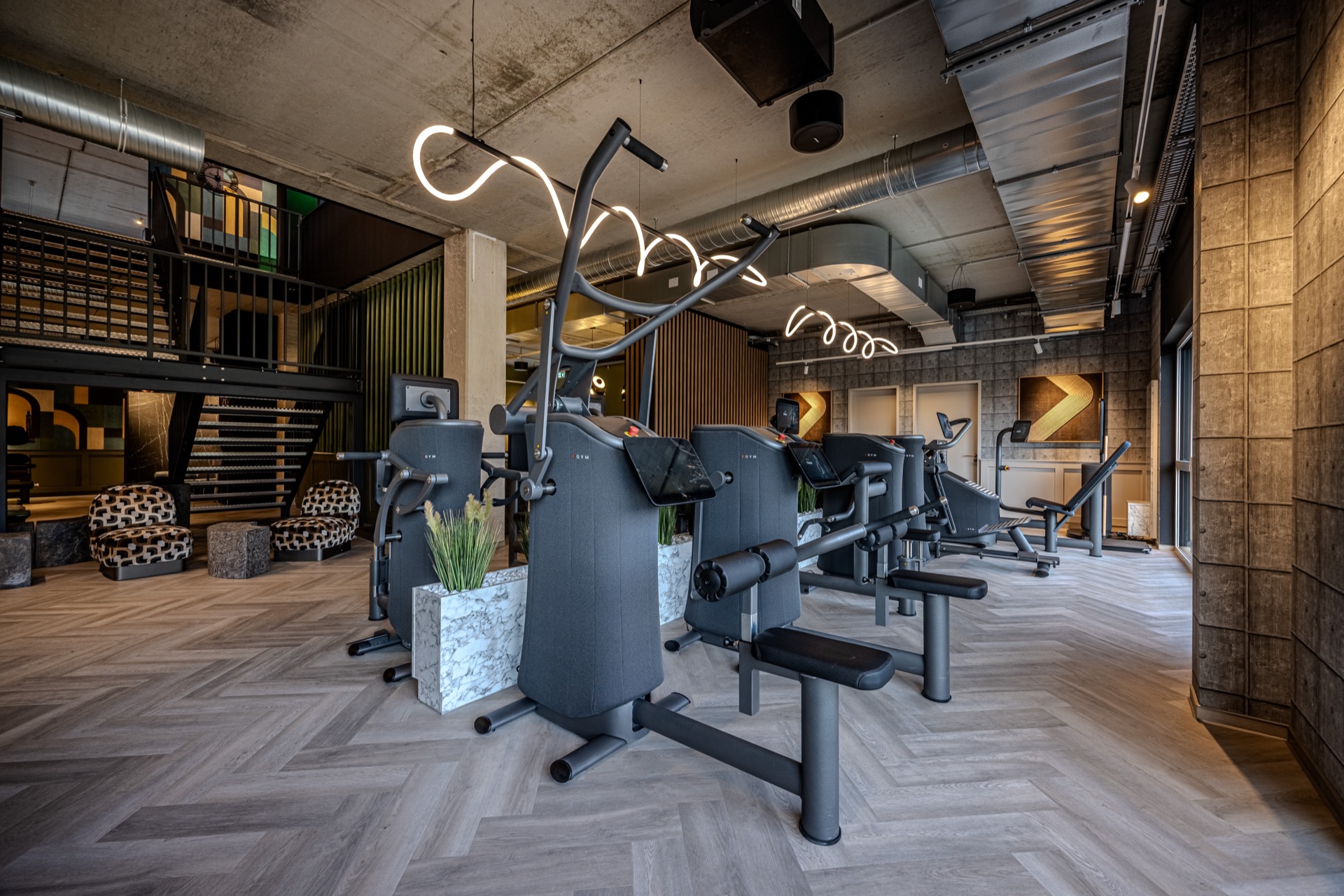 Bei GYM7 endet das Erlebnis nicht am letzten Satz. Wellness, Lounge und Bar – Räume zum Runterkommen, Auftanken, Genießen. Designmöbel, klare Architektur, urbane Leichtigkeit: Details, die Atmosphäre schaffen. Hier bleibt man nicht nur fürs Workout, sondern für den Vibe.