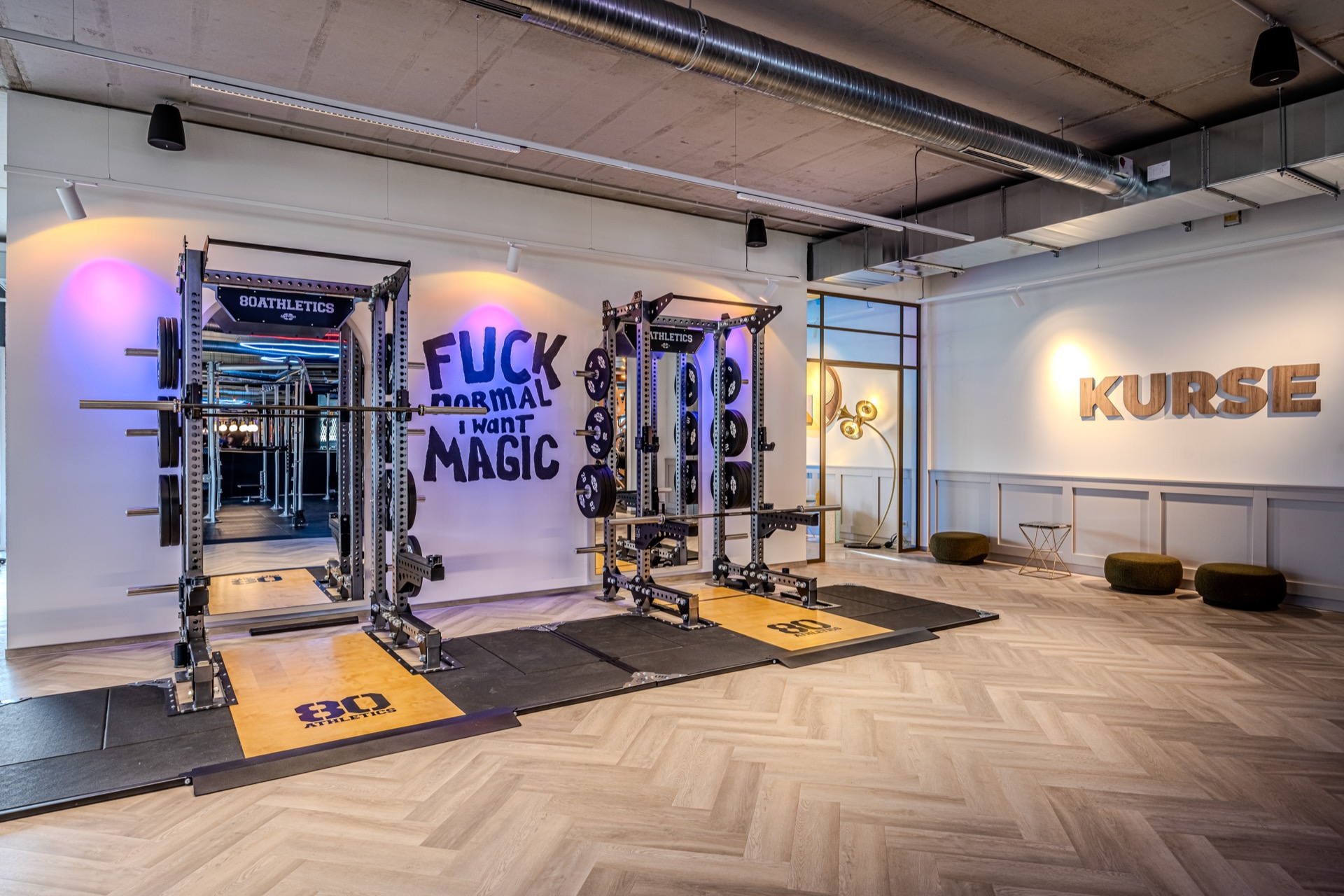 Der Freihantelbereich von GYM7 ist kein Ort für halbe Sachen. Hier liegt echtes Eisen, hier regiert Präzision. Ausgestattet mit Gym80 – Maschinen gebaut wie Skulpturen: massiv, kompromisslos, ästhetisch. Wer hier trainiert, hebt nicht nur Gewicht, sondern auch Anspruch.